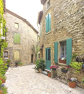 It is tucked away in a lovely little street that runs between what used to be the ramparts of the village and the chateau walls. In fact les Volets Verts is in the back walls of the old chateau. Parts of it are very old,(this is not a new build), so don't be surprised if the floors are not level or if bits stick out? It has been renovated while still respecting many old features.